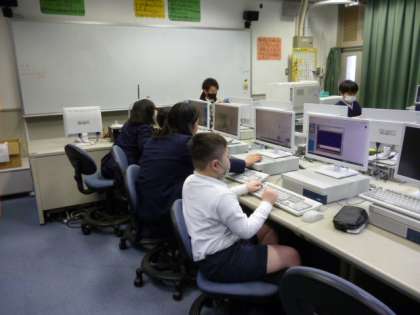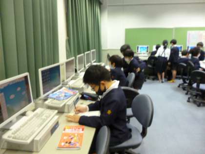 今日はメディアルームでキーボードの練習をしています。ちょっとずつ速く打てるようになってきたかな?