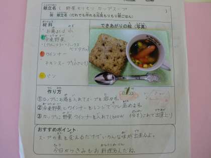 子どもたちが目を奪われたチーム北巽(北巽小学校の教職員)作成の朝ごはんです。すごくおいしそうですね!