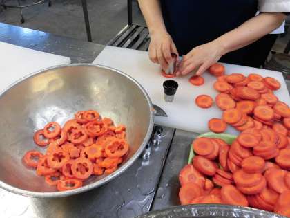 使用のなにわの伝統野菜でもある金時にんじん、青みにみつばを使用しています。金時にんじんは、お正月らしく花形にしてくださっています。