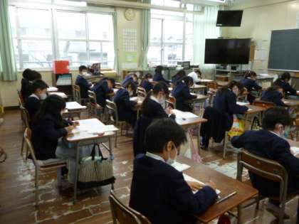 3年生は今回が初めての学力経年調査になります。まとめプリントで復習してきた成果が出るかな?