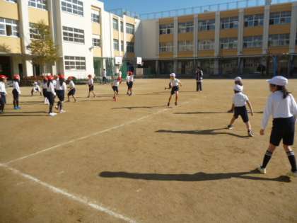 避難訓練が終わってからの時間を利用してドッジボールをしました。投げるのが上手になってきた人が増えてきました。