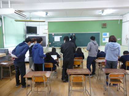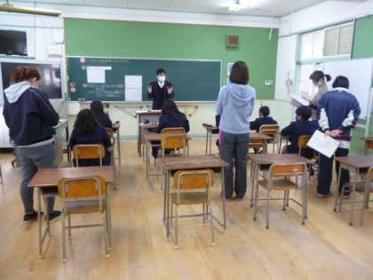 今日の授業は研究授業です。L字型の図形の面積の求め方について学習をしました。