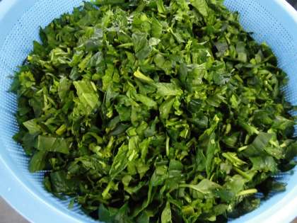 「はくさいとほうれんそうの煮びたし」は、はくさいはゆでるか焼き物機で蒸し、ほうれんそうはゆで、だしをきかせた調味液で煮びたしにしています。