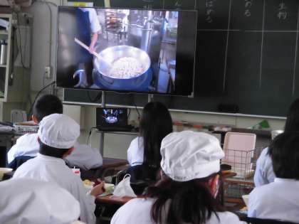 また、給食委員会で作成した、「給食のできるまで」のビデオを各学級で見て、給食室でどんな風に調理されているのかを知りました。