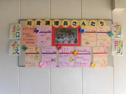 給食室前に、給食調理員さんの紹介を掲示しています。