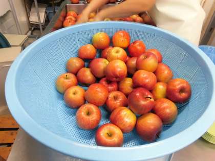 これに、「りんご」を組み合わせています。今日のりんごは、長野県産の「サンふじ」です。