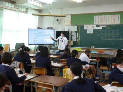 自分の出席番号について、順番に英語で言っていきます。次は自分の割り当てられたアルファベットを言っていきました。間違う人もいましたが、間違っても温かい雰囲気で笑っていました。