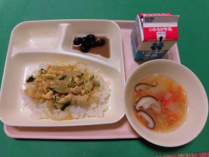 ★親子丼・すまし汁・黒豆の煮もの・牛乳