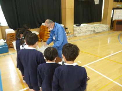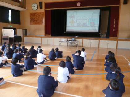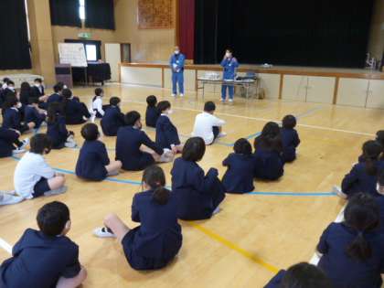 今日は柴島浄水場で働いている方にきていただき、水道教室を行いました。最初はDVDを見て、浄水の仕組みを知りました。