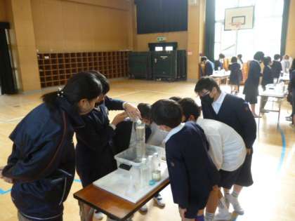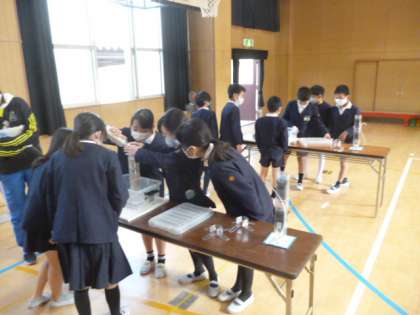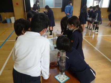 次はグループごとに分かれてのろ過実験です。班で役割分担を決めて、何度もろ過していく中で、きれいな水を作っていきました。いつも使っている水がさらに身近なものになりました。柴島浄水場のみなさま、ありがとうございました。