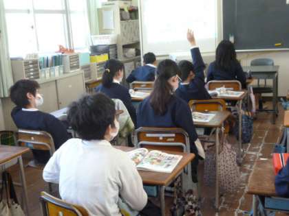 テストをしてから、レストランでの一場面についての、会話を聞いています。出てくる単語や話の内容を聞き取れていました。