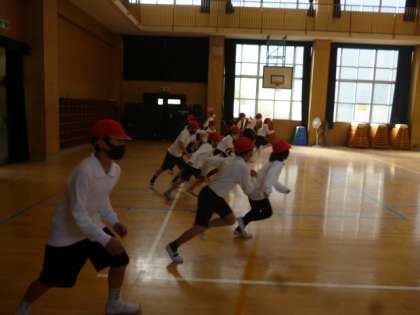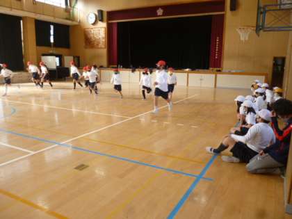 1組は体育館で20mシャトルランを行いました。冬場は持久力アップのチャンスです。シャトルランも回数をのばしていこうね。