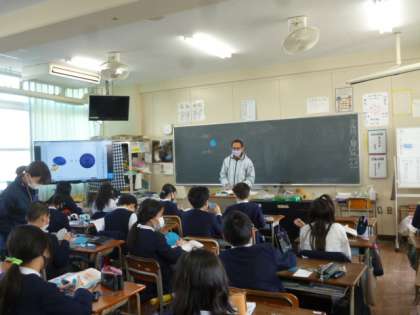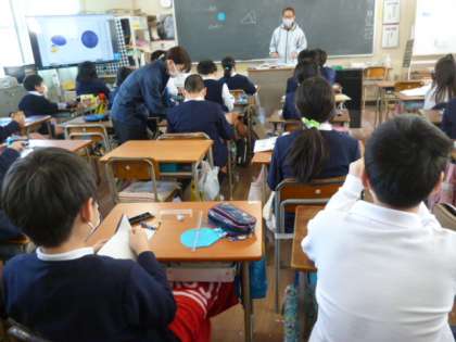 多角形と円について、実際に折り紙をつかって、折ったり、切ったり、長さを測ったりして調べています。