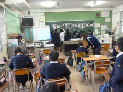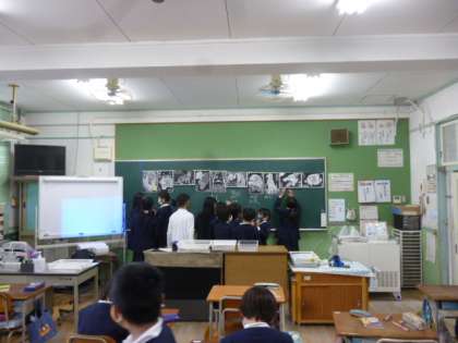 版画の下絵をどれにするかを選んでいます。「どれにしようかな?」
