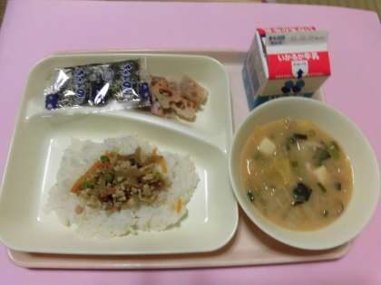 ★鶏ごぼうご飯・みそ汁・焼きれんこん・牛乳