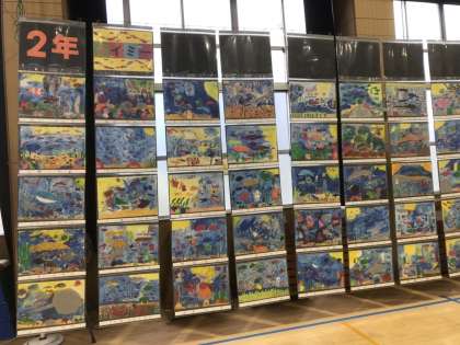 図鑑を見て、たくさんの発見をして描いた、海の生き物たちの絵です。海と、差しこむ光を絵の具で表現しています。