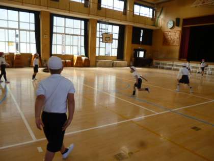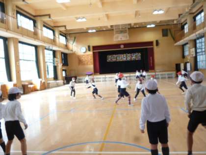 2組は体育館でなわとびの練習をした後に、ソフトフリスビーを使って、ドッジボールをしました。フリスビーはボールとは違う動きになるので、よけるのが難しそうでした。