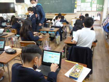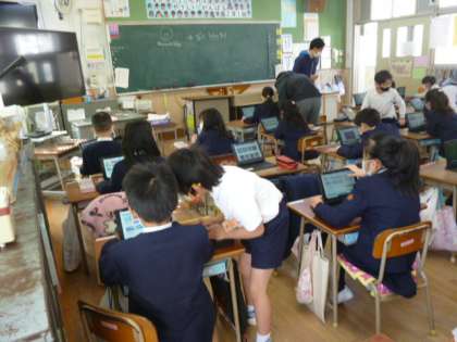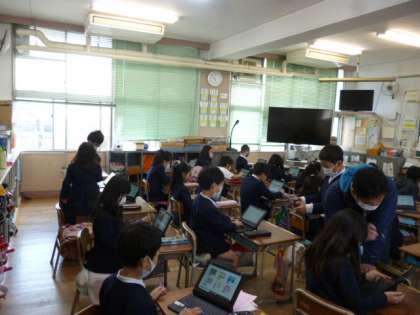 タブレットで自分の好きなものを調べています。少しずつ自分たちで操作できるようになってきました。覚えるのが早いですね。