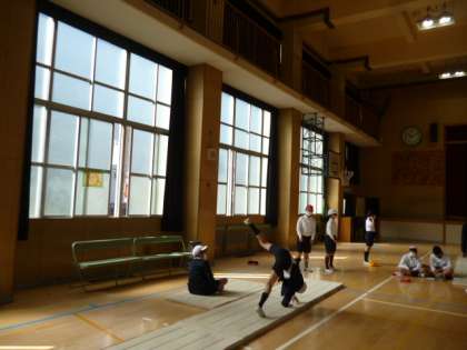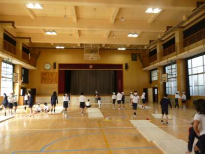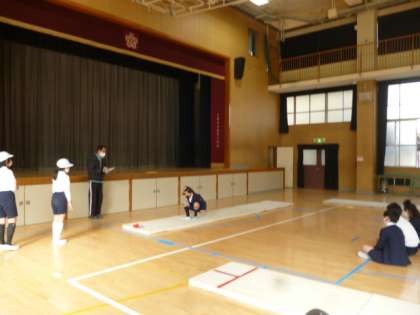 1組は体育館でマット運動のテストを行いました。全体が終わった後に、もう一度、チャレンジする人もいました。