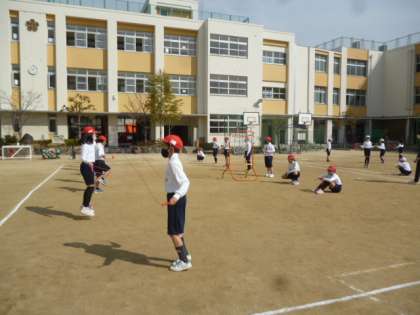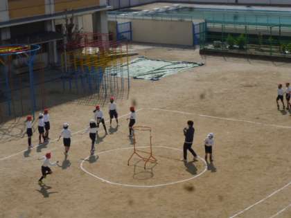 2組はなわとびのテストをした後に、セストボールの試合をしました。ゴールが大きいので、ナイスシュートがたくさん見られました。