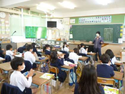 手拍子でリズムをとったり、カスタネットでいろいろなリズムを、たたいたりしました。一人ずつ確認していきましたが、みんな上手にリズムがとれていました。