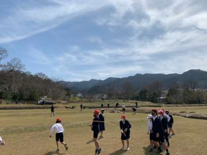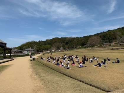班ごとに石舞台公園に到着し、遊んでいました