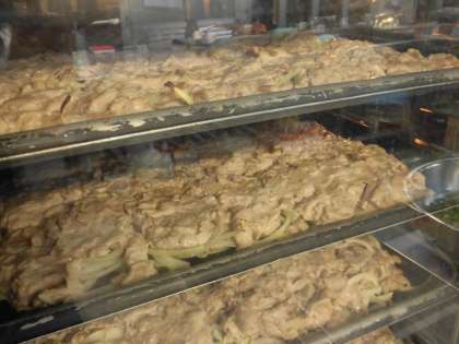 「豚肉のしょうが焼き」は、豚肉にしょうが汁、砂糖、料理酒、みりん、こいくちしょうゆ、綿実油で下味をつけ、たまねぎを混ぜ合わせて、焼き物機で焼きます。