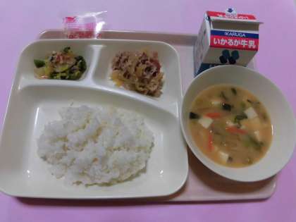★豚肉のしょうが焼き・とうふのみそ汁・なのはなのおひたし・ご飯・牛乳