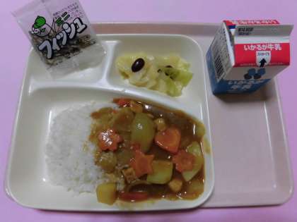 ★チキンカレーライス・ビーンズサラダ・ミニフィッシュ・牛乳