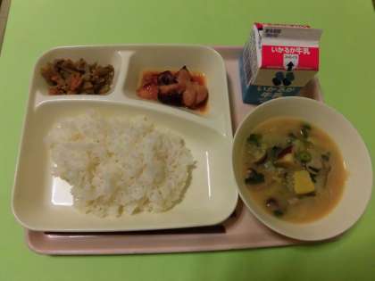 ★鶏肉のてり焼き・さつまいものみそ汁・きんぴらごぼう・ご飯・牛乳