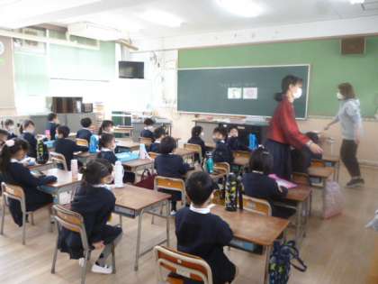 1,2年生学活の様子です。1年生は短めの2時間で下校です。