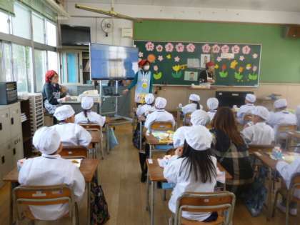今日は小学校に入学してから、初めての給食です。たくさん食べて、元気に過ごしてね。