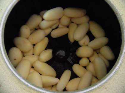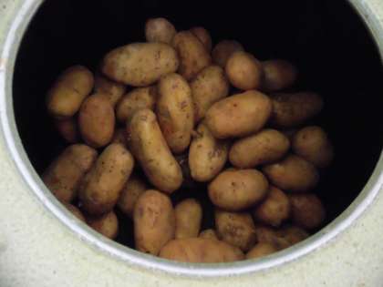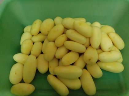 機械に入れてしばらくすると、皮がむけてきれいになったじゃがいもがでてきます。