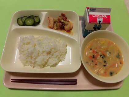 ・焼きとり・みそ汁・きゅうりのゆず風味・ご飯・牛乳