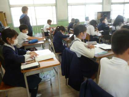 「こわれた千の楽器」の学習をしています。こわれた学期の気持ちになって、考えていました。音読の声が良く出ていました。