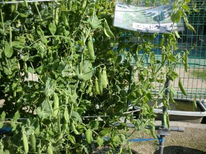 プール横の畑で、管理作業員さんが育てておられる「えんどうまめ」です。