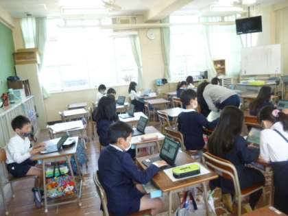 朝の出席確認をした後、NHK for Schoolを見ながら、学習をします。