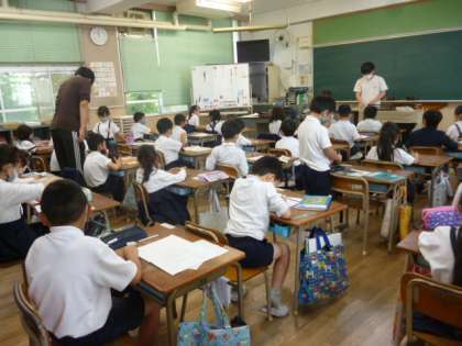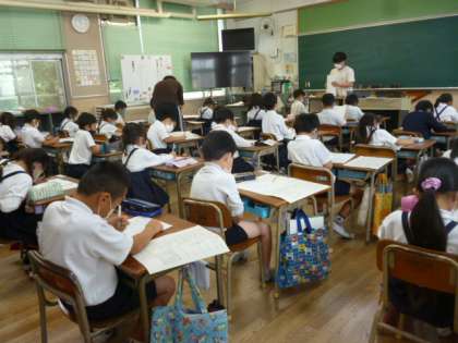 算数の今まで習ったところのテストをしています。しっかりとできるかな?