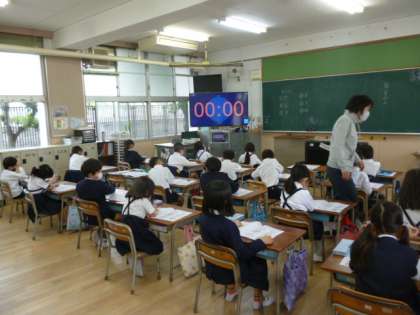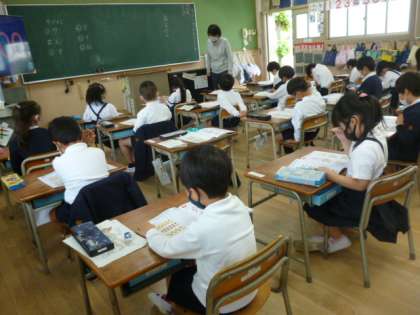 1組はいろいろなものが何個あるかの学習、2組は「な」「ひ」のひらがなを学習しています。きれいに書ける人が増えてきていますね。