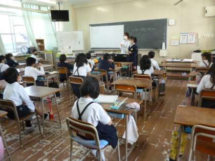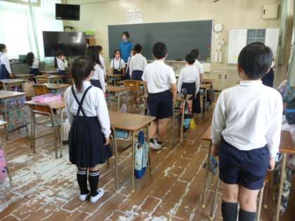 朝の挨拶から一日が始まります。理科(種のはたらき)のVTRを見て、学習していました。