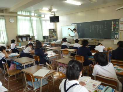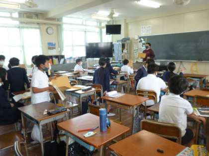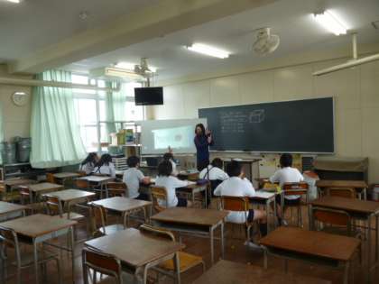 1組はテスト直しをしています。2組は算数でクラスを2つに分けて、立方体について学習をしています。