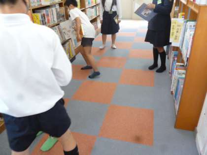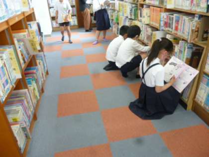 1組は図書室で読みたい本の貸し出しをしていました。みんな楽しそうに本を選んでいました。2組は理科のテストです。終わった人は本を読んでいました。