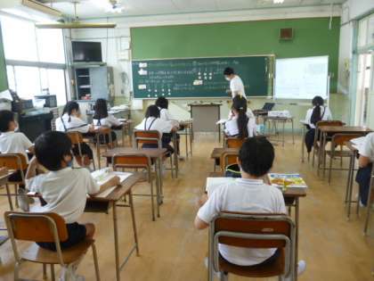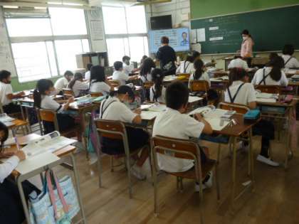 1組はクラスを2つのグループに分けて、大きい数の割り算の仕方について学習をしています。2組は社会「浄水場の働き」について学習をしています。身近にある水のことをしっかりと学んでね。