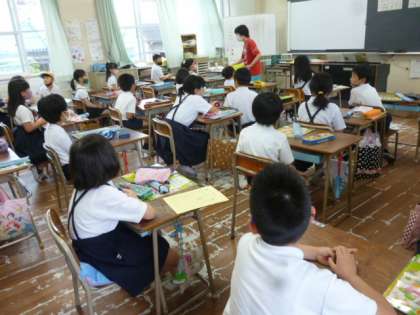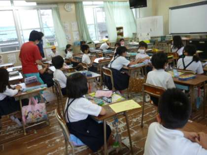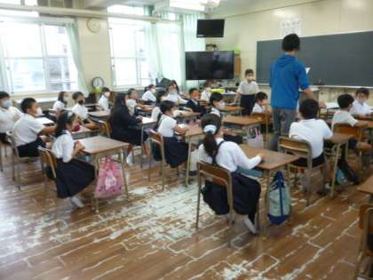 1組はずっとでっきていなかった音楽の授業をしています。カスタネットをリズムよく鳴らしていました。2組は席替えがどこになるかを聞いています。ドキドキしますね。