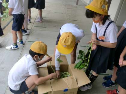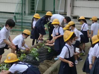 さつまいもを植えています。どんなのができるか楽しみですね!