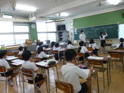 1組はあまりのある割り算について、グループに分かれて学習をしています。だんだんと難しくなってきますね。がんばって!
