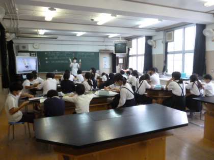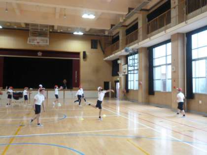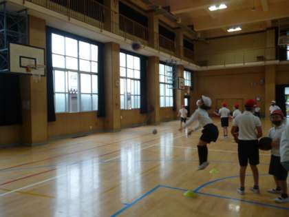 1組は理科、植物がいろいろな条件の違いの中で、どのような育ち方をするかを学習しています。2組は体育館で、バスケットボールのシュート練習をしています。みんな楽しそうに活動をしていました。