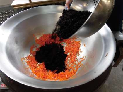 油でにんじんを炒めて、何かを加えています。何でしょう?