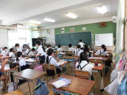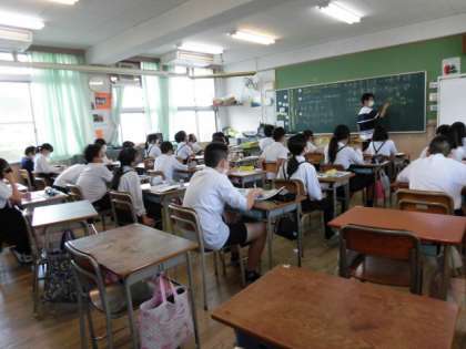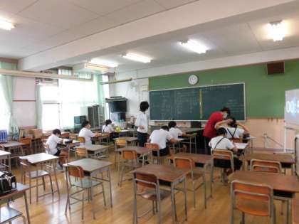 6年生は算数の授業を学年を3つに分けて行っています。いつもと違う雰囲気の中でも集中して学習に取り組んでいます。