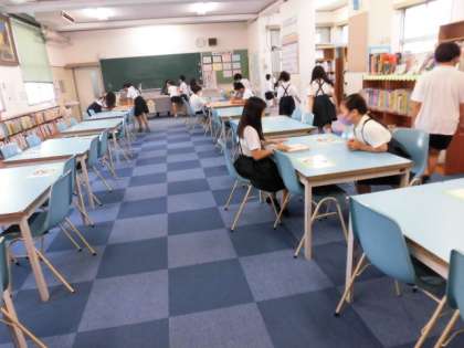 今日は雨なので、運動場が使えません。図書室に多くの人がきています。梅雨で雨の日が多くなるので、この機会にたくさん本を読もうね。